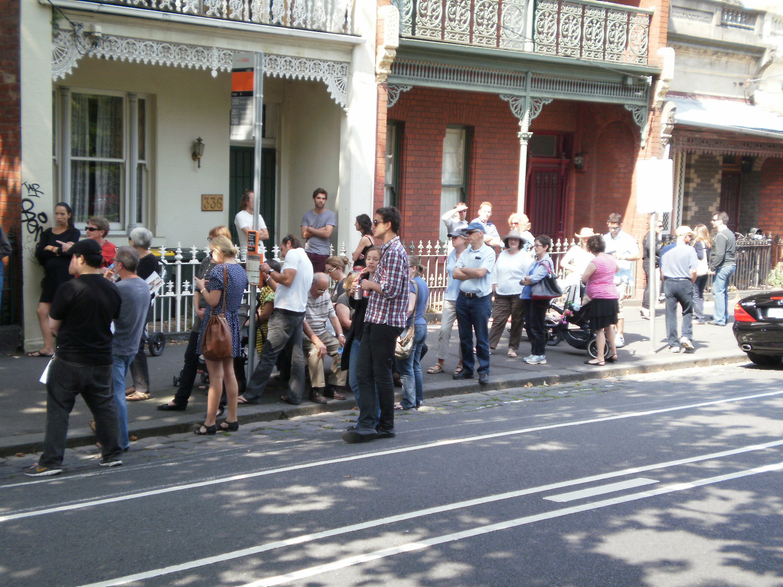 Punters: A true who’s who of the Carlton neighbourhood at this auction! About 100 metres from the previous auction at 38 Rathdowne Street, but a world away in terms of buyer demographic. Older buyers were coming through the home, which made sense in terms of price point for the house ($1.220 was the opening vendor bid) – but seemed incongruous with the actual layout of the residence which had extensive and very steep stairs. A limited time that an older person could reside in this home, methinks.