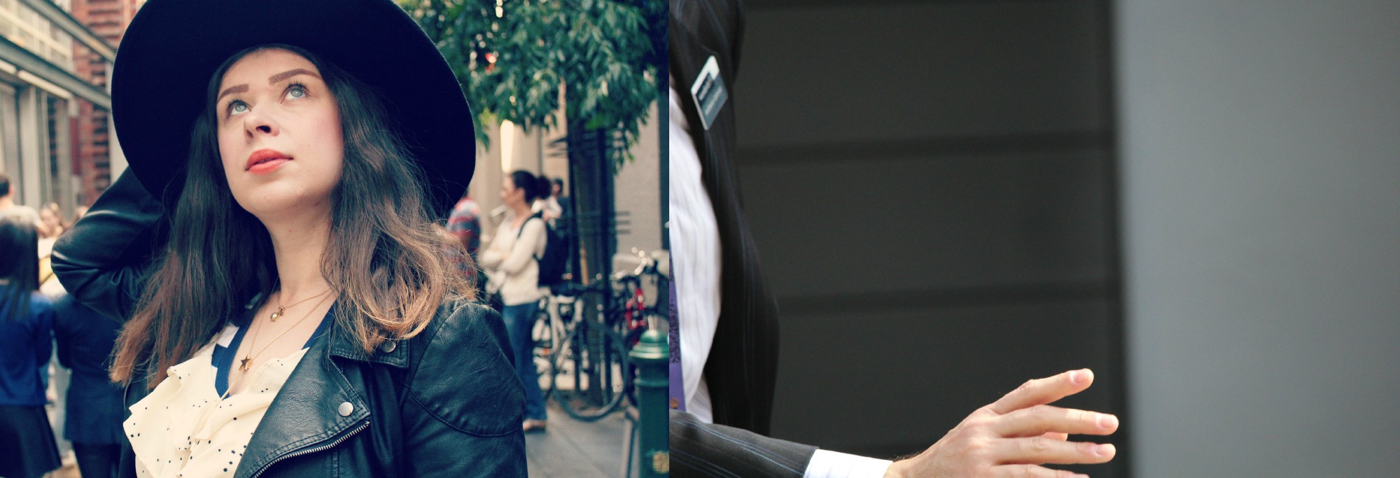 Leave the suits to the agents: wearing H&M woollen hat, Country Road silk dress.